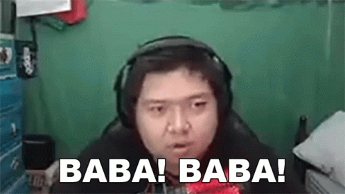 Nhil Diaz, wearing headphones, emphatically says 'Baba Baba!' in front of a green screen.