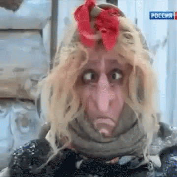 Baba Yaga, the legendary witch, flirts and winks playfully, making eyes at the viewer.