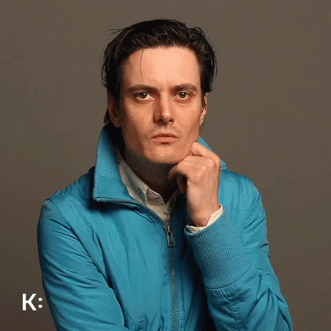 A man in a blue jacket reacts with surprise and shock, covering his face in disbelief.