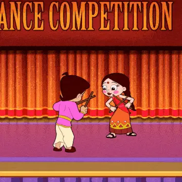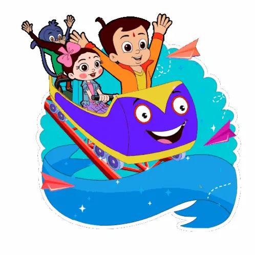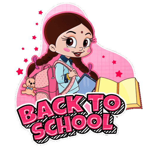 Chutki, from Chhota Bheem, ready for school with her backpack and books.