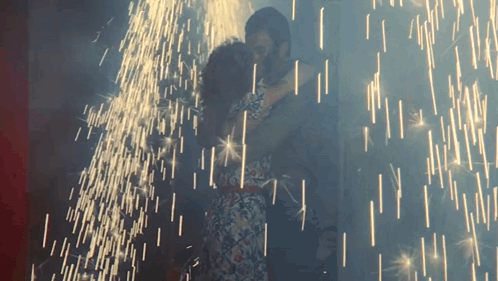 Tom Selleck in Bad Movies Rule Bmr: A couple shares a passionate kiss amidst a shower of bright sparks.