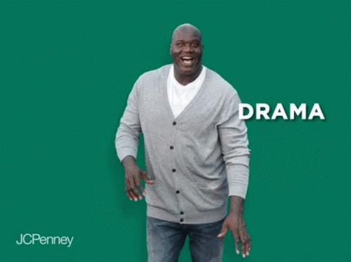 A man in a gray cardigan laughs, with text 'ANXIETY' and 'NO DRAMA' appearing, dispelling 'Bad Vibes'.