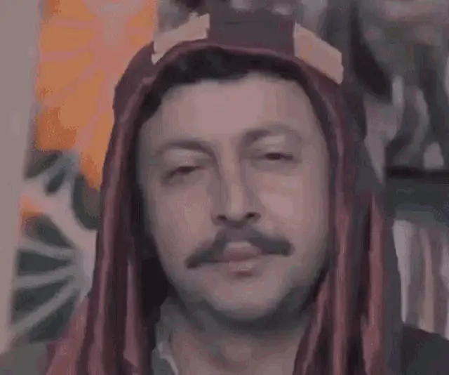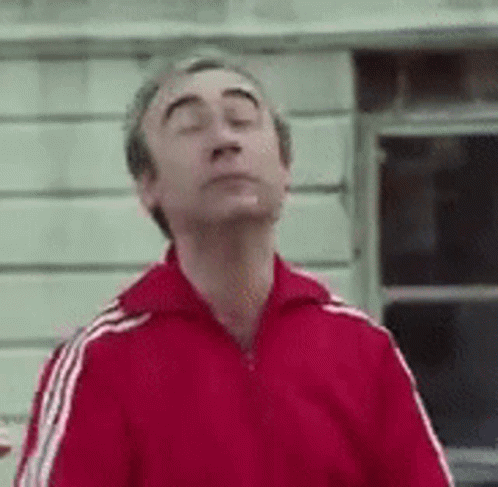 Sener Sen as Badi Ekrem, wearing a red tracksuit and crossing his arms, looking up.