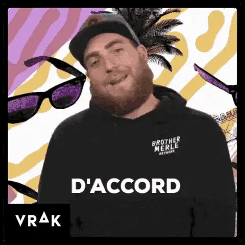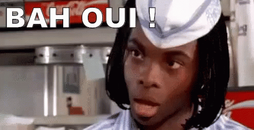 Man in a chef's hat makes a funny face with the French caption "Bah Oui!".