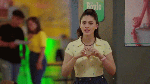 Cemre Baysel from Baht Oyunu makes a heart sign, with Ada Tozun in the background.