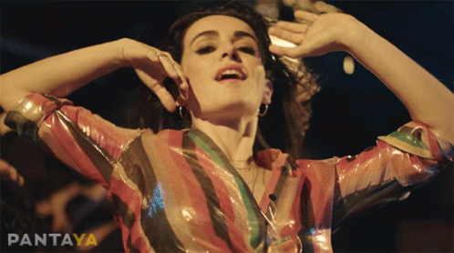 Ana De La Reguera dancing energetically in a vibrant striped shirt, with the Pantaya logo visible.