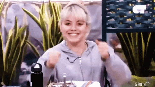 Alba Reche smiling and giving thumbs up, showing happiness during a Lorixot segment.