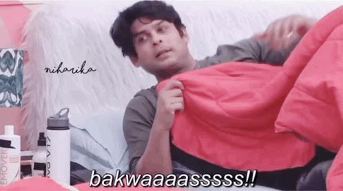 Sidharth Shukla reacts with 'bakwaas' while lying in bed with a pink blanket.