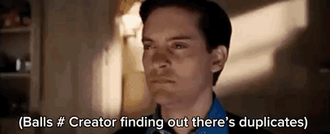 a man in a blue shirt and tie is talking about balls # creator finding out there is duplicates .