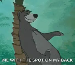 Baloo, the beloved bear from The Jungle Book, enjoys a satisfying backscratch against a palm tree.