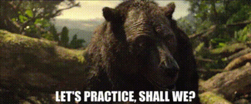Baloo from The Jungle Book challenges with 'Let's practice, shall we?' in this memorable scene.