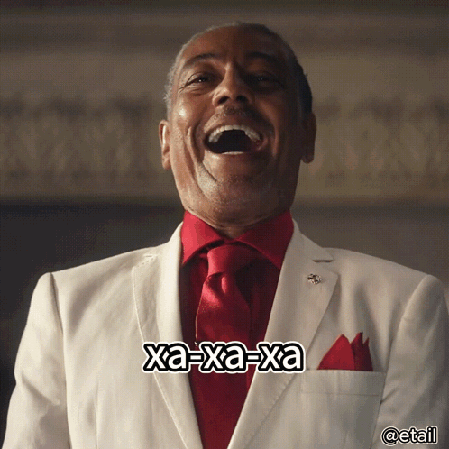 A man in a white suit laughs, then stares intensely, followed by the text 'YOU ARE FUNNY' and 'BANNED'.