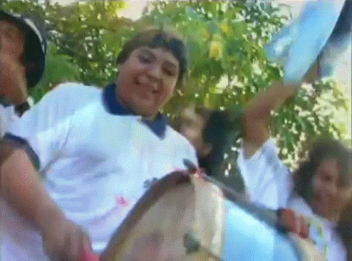 Yerba Brava band members playing drums and cheering during a lively outdoor celebration, capturing the festive atmosphere.