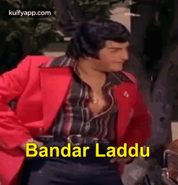 N. T. Rama Rao (NTR) dancing in a red blazer, with 'Bandar Laddu' text overlay.