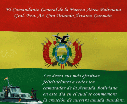 General Ciro Orlando Álvarez Guzmán of the Bolivian Air Force congratulates the Bolivian Navy on Flag Day.