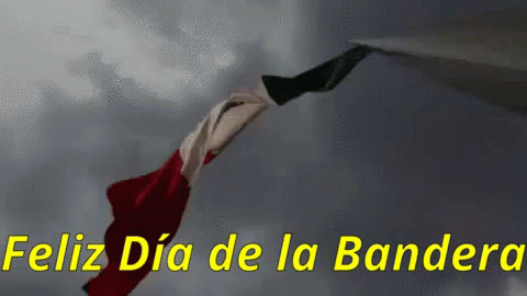 Mexican flag waving in the wind with the text "Happy Flag Day" displayed.