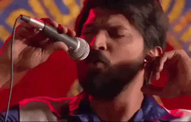 Comedian Rahul Dua on stage, gesturing while discussing 'Bandh' (closed/strike) in his stand-up routine.