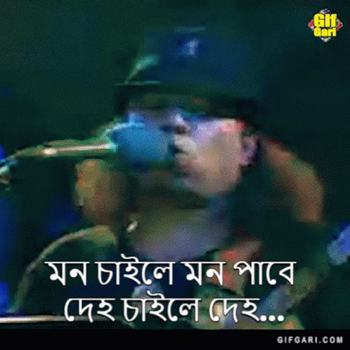 Ayub Bachchu, the legendary Bangladeshi musician, performs live, singing into a microphone with a guitar.