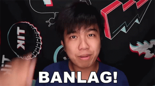 Junell Dominic reacts with a 'Banlag!' (Cross-eyed!) expression, against a social media-themed background.