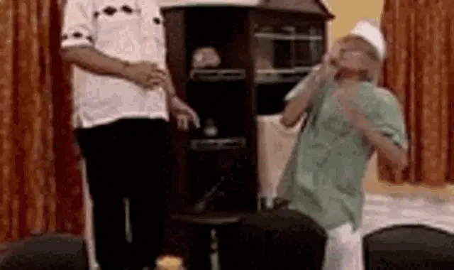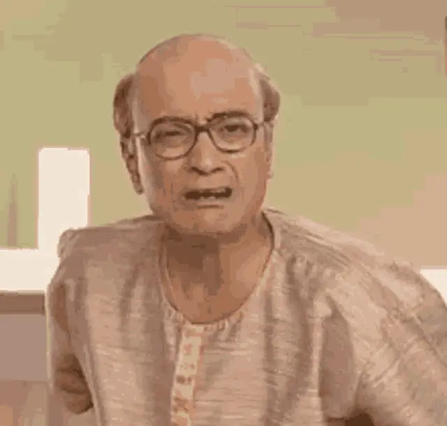Bapuji and Babita from Taarak Mehta Ka Ooltah Chashmah show their varied expressions, from serious to a slight smile.