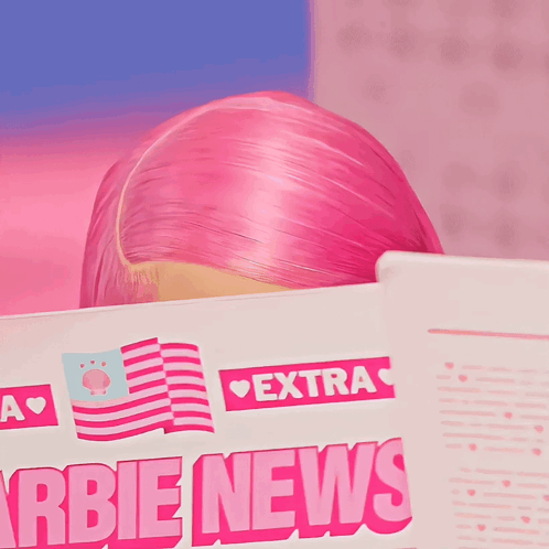 BarbiaMinaj, resembling Nicki Minaj, with pink hair reading 'Barbie News' in the Barbie World.