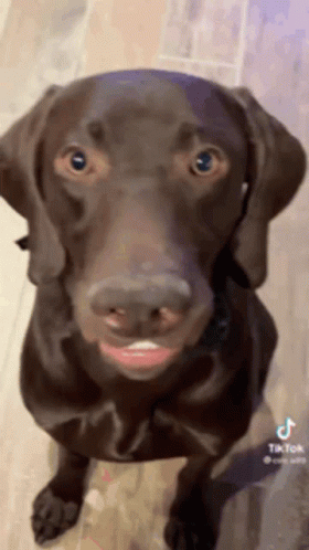 Barbieeechanel, the adorable brown dog, shows off a cute smile for the camera in this TikTok video.