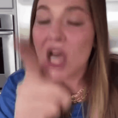 Bardiszns Hrhcollection making funny faces and expressions, pointing her finger and opening her mouth wide.
