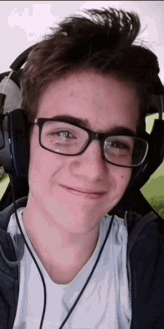 Barni Barnabás, a young man wearing glasses and headphones, looks directly at the camera with various expressions.