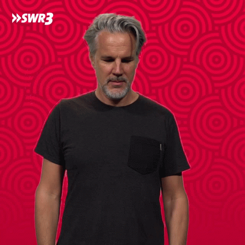 Barschi, a man with gray hair, looks intently at his phone against a red background with the SWR3 logo.