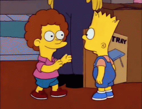 Bart Simpson pushes or hugs Rod Flanders, who is crying, with Ned Flanders partially visible in the background.