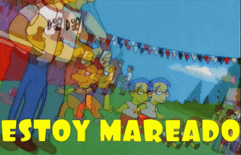 Bart Simpson experiences extreme dizziness at the fair, with distorted vision and the caption 'Estoy Mareado'.