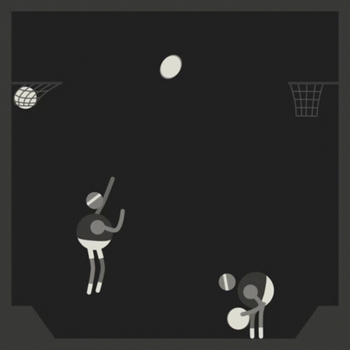 Two stylized figures engage in a buttery smooth, looping monochrome animation of basketball shots.