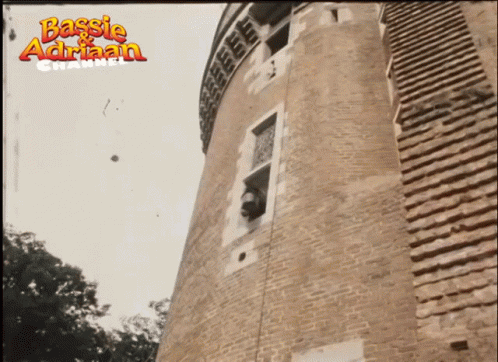 Bassie the clown and Adriaan are seen in a funny moment where Bassie gets unexpectedly wet.