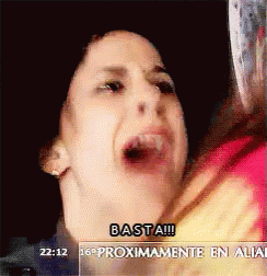 An intense scene from Aliados, featuring a woman shouting 'Basta!!!' (Enough!!!) with a distressed expression.