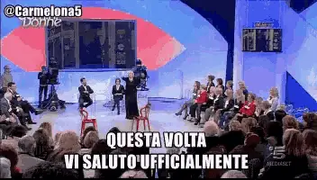 Barbara D'Urso, as Dottoressa Giò, in a hospital bed, speaking to a man, with 'Basta Usare Il Cuore' on screen.