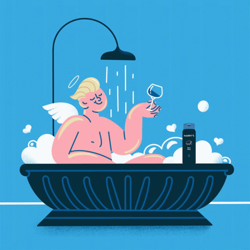 An illustration of a cupid-like angel enjoying a luxurious bubble bath with Harry's body wash.