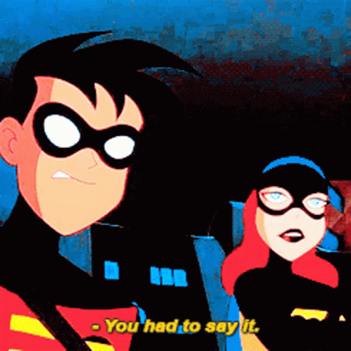 Robin and Batgirl stand together as Batgirl remarks, 'You had to say it.'