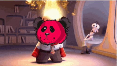 Bazooka Bois red panda character with an angry expression, next to Fear from Inside Out.