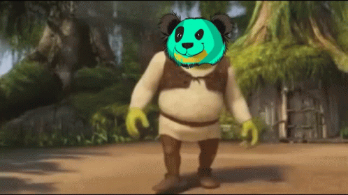 Shrek with a green panda head, a meme from Bazooka Bois Pandas Fight Club, saying 'Come At Me'.