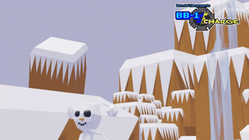 Low-poly cat-like character in a retro winter wonderland, from the indie game BB-1 Charge.
