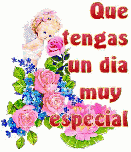 A greeting card with flowers and the Spanish message 'Que tengas un día muy especial' for a special day.