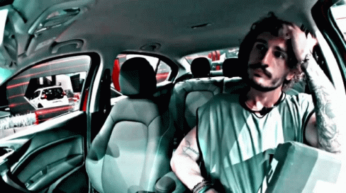 Alan Possamai from Team Alan is seen sitting inside a car, appearing to be waiting.