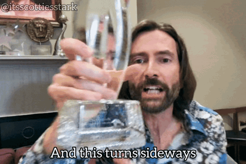 David Tennant holds an award, demonstrating how it turns sideways before making a crude joke.