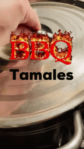 A close-up view of a pot with a lid, featuring the text 'BBQ Tamales' as delicious food steams inside.