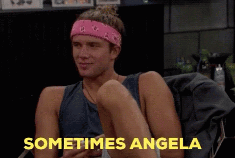 Tyler Crispen reacts to Angela, saying 'Sometimes Angela just doesn't give a f*ck' and then 'I love it'.