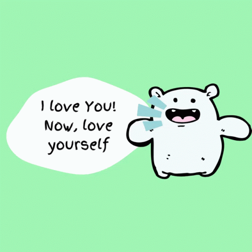 A cute cartoon bear shares a heartwarming message: 'I love You! Now, love yourself.'