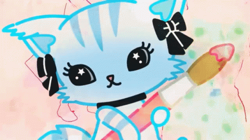 Chelsea Beatcats, the cute Sanrio cat, paints a vibrant, colorful artwork with a brush.