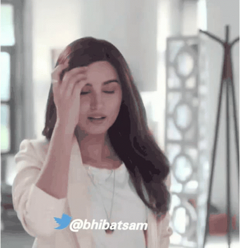Tara Sutaria smiles beautifully, touching her hair, with a social media handle visible.