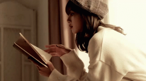 Lisa (Lalisa) reading a book by a window, wearing a beret in a cozy room.