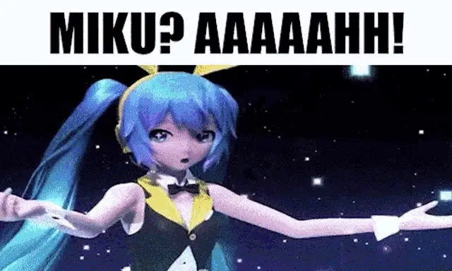 Hatsune Miku dancing in a meme with Portuguese text 'Miku? Marmita? Sai da minha vida! Sai do Bebox!'